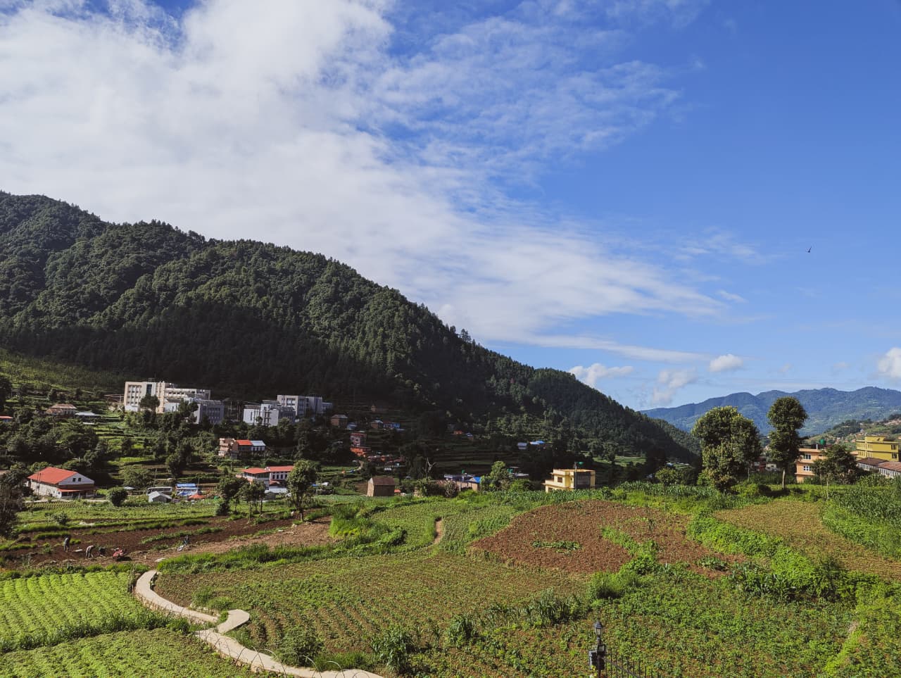 Take the cable car from Kathmandu to Chandragiri for stunning views and a coffee break. From here, begin an easy walk down to Chitlang village. Upon arrival, settle into your cozy attic-style homestay and enjoy a delicious dinner by the fire.